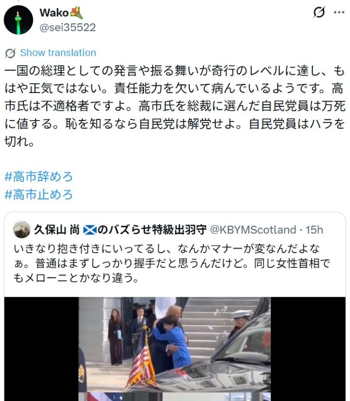 調和の星へ 真実を知る ■【 イランがホルムズ海峡を「米/イスラエル/日本」以外には解放と発表。中東原油輸入停止で日本人7000万人餓死! トップページ 】 2026-03-22 > 【 3/19日米首脳会談 高市早苗の言動が奇行 正気ではない醜悪で下品な正体が世界中に報道!イランの小学生を虐殺したトランプが世界に平和をもたらすという狂った発言! 】 26-03-22 調和の星へ 真実を知る