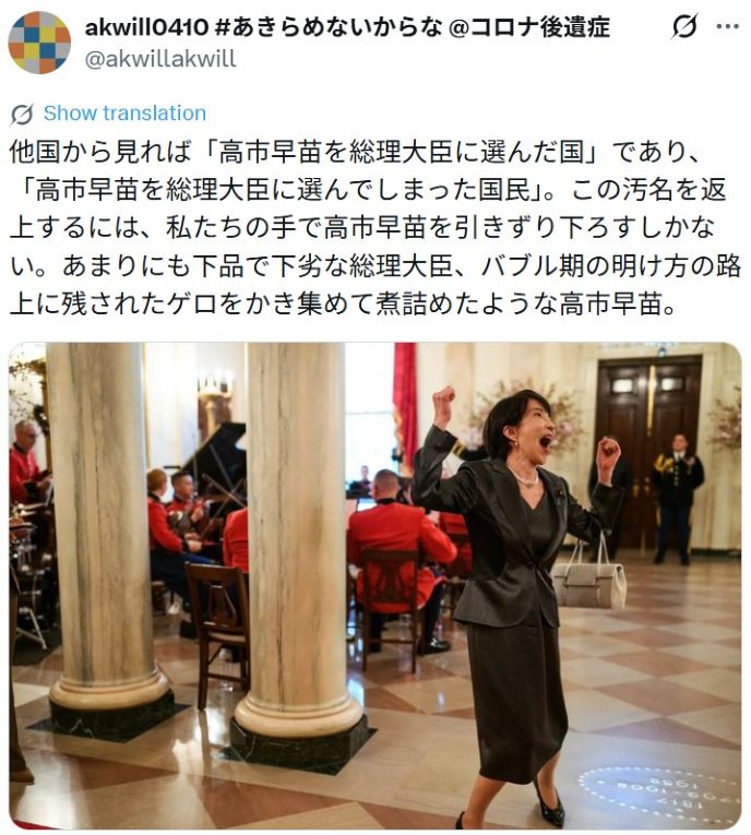 【 3/19日米首脳会談 高市早苗の言動が奇行 正気ではない醜悪で下品な正体が世界中に報道!イランの小学生を虐殺したトランプが世界に平和をもたらすという狂った発言! 】 2026-03-22更新![]() ● タイトル ![]() ◆【ご連絡】・・「カタカナが半角表示」、「画像が非表示」の場合、PC・スマートフォンページが携帯サイト表示に変換されています。通常、携帯サイト表示とはなりません。日本のカバール(闇の勢力)に妨害されているようです。この場合、下記のURLから当該ページを開いていただけますようよろしくお願いいたします。◆ (「Firouzeh ツイッターさん 2021/12/22」より) |