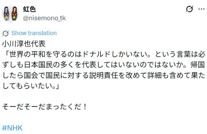 【 中東原油輸入完全停止!4月以降、生産財・日用品・食品・燃料油すべてが急速に消えて行き、1年後日本人7000万人餓死します/緊急対策は小川淳也氏を首相に首班指名! 】 2026-03-21更新![]() ● タイトル ![]() ◆【ご連絡】・・「カタカナが半角表示」、「画像が非表示」の場合、PC・スマートフォンページが携帯サイト表示に変換されています。通常、携帯サイト表示とはなりません。日本のカバール(闇の勢力)に妨害されているようです。この場合、下記のURLから当該ページを開いていただけますようよろしくお願いいたします。◆ (「Firouzeh ツイッターさん 2021/12/22」より) |