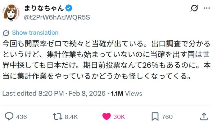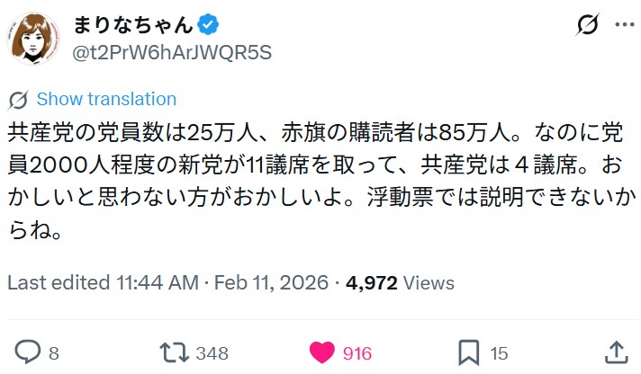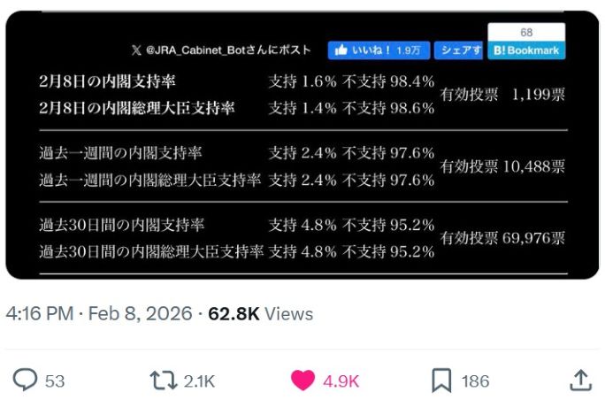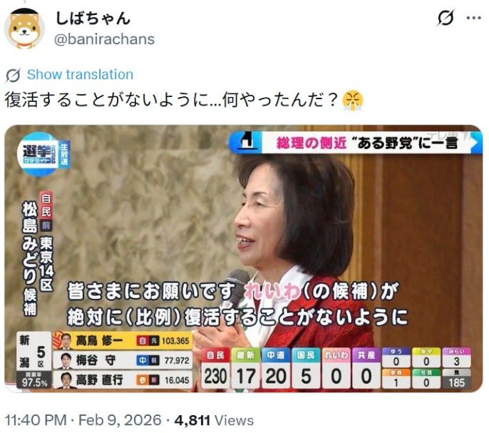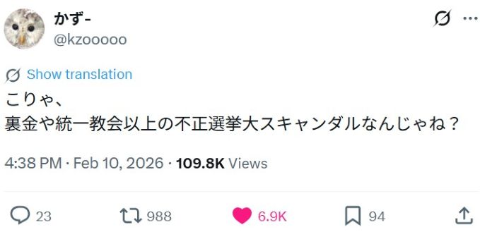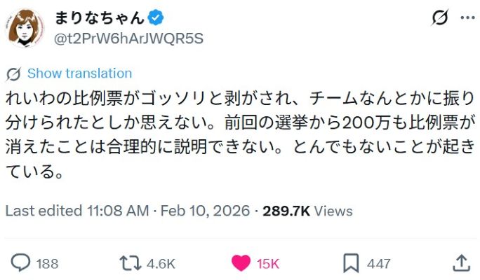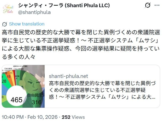 【 衆院選 自民党による不正選挙が多くの国民にバレました!内閣支持率1.6%で自民党316議席獲得・街頭演説で数千人が集まるれいわ新選組当選者 比例1人・選挙区0名 】 2026-02-12更新![]() ● タイトル ≪ご参考・推奨記事≫