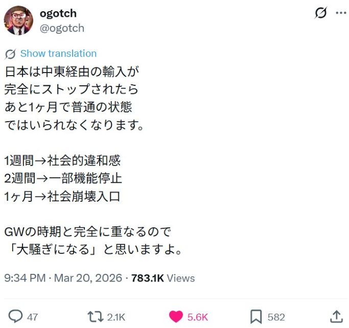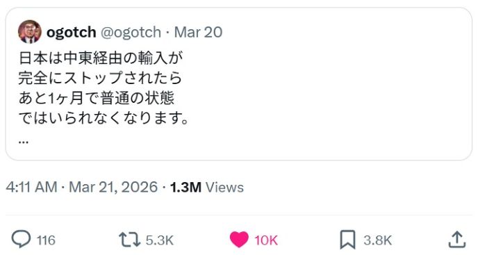 (「ogotch X/ツイッター さん 2026/03/20」より)