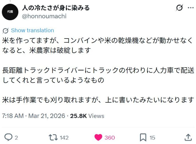 (「人の冷たさが身に染みる X/ツイッター さん 2026/03/21」より)
