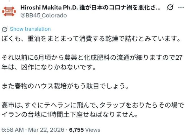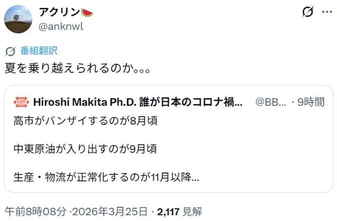 (「kmiura X/ツイッター さん 2026/03/20」より)