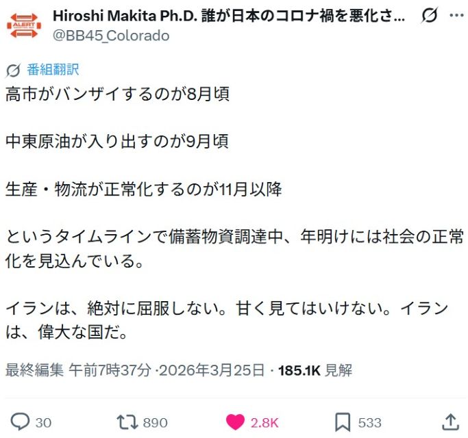 (「イラン X/ツイッター さん 2026/03/24」より)