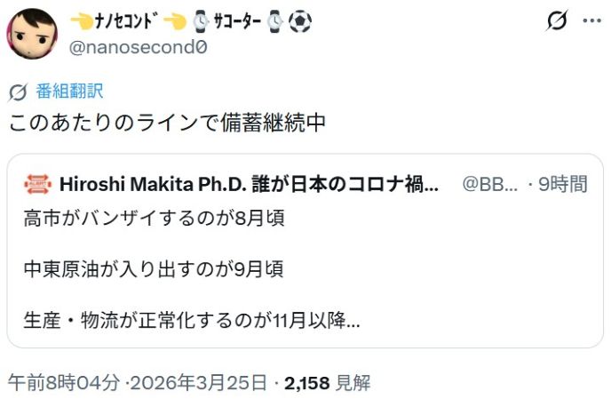 (「ナノセコンド サコーター X/ツイッター さん 2026/03/25」より)