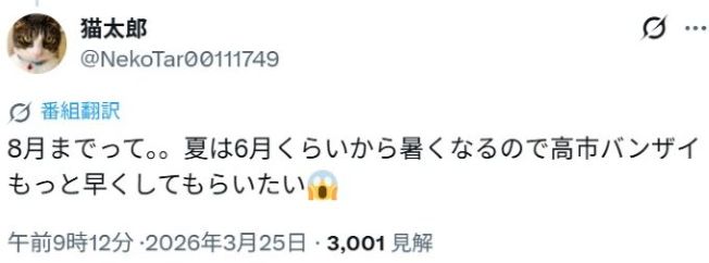 (「猫太郎 X/ツイッター さん 2026/03/25」より)