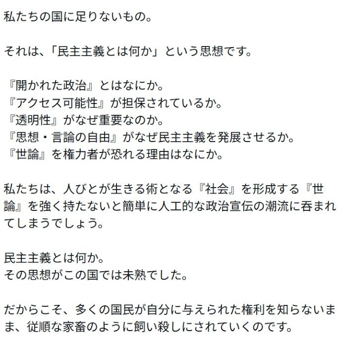 透徹した論理と想いが心に沁みとおってきました。