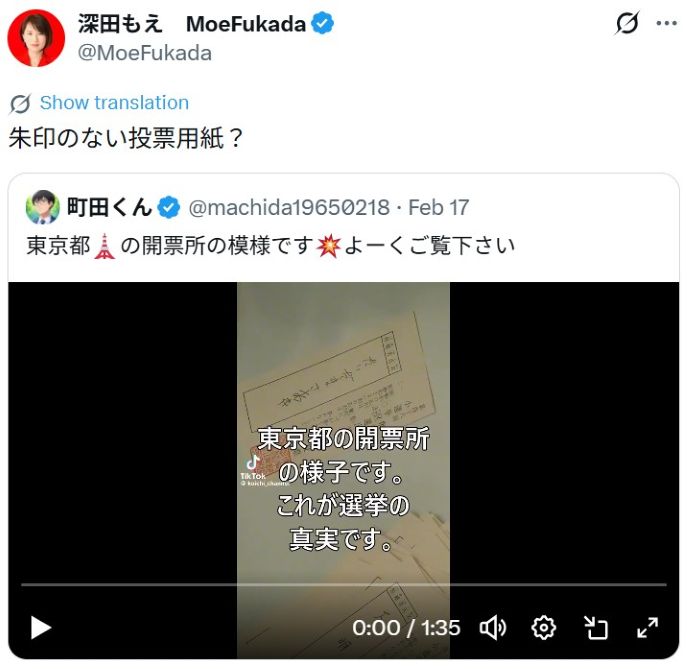 調和の星へ 真実を知る ■【 高市早苗は在日コリアン2世 父高大休は帰化人/日本のリーダー深田もえ氏はYAP遺伝子をもつ尊い日本人! トップページ 】 2026-02-25 > 【 深田もえさんと民主主義国日本を創る②:衆院選不正選挙の真実 台湾からの得票数操作で、もえ票は13000票/X/ツイッター 不正疑惑に対する提訴/不正証拠画像・動画 】 26-02-21 調和の星へ 真実を知る