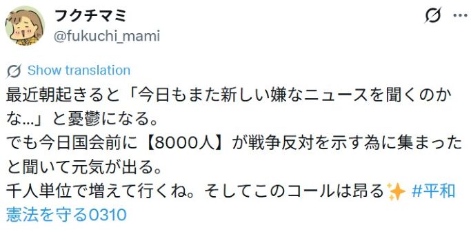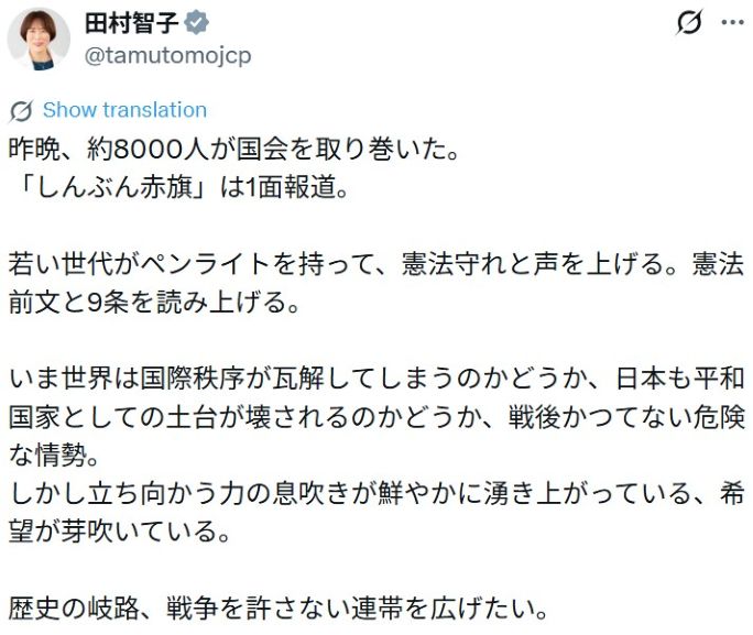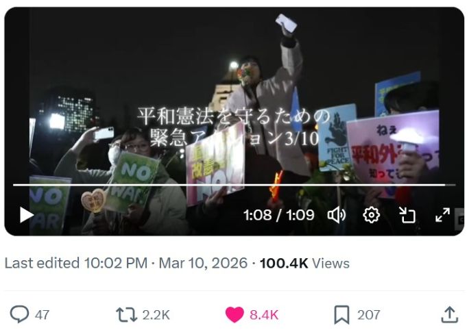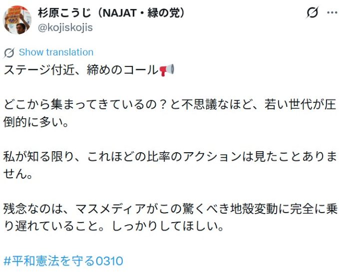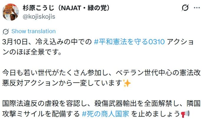 調和の星へ 真実を知る ■【 石油不足は世界中で日本だけ!日本の石油備蓄は60日分6月に無くなる・高市自民党の目的は全国民完全奴隷化! トップページ 】 2026-04-26 > 【 #平和憲法を守る0310:約8000人が国会を取り巻いた。若い世代が憲法守れと声を上げる。立ち向かう力の息吹きが鮮やかに湧き上がっている(田村智子氏)/0319:11000人 】 26-03-22 調和の星へ 真実を知る